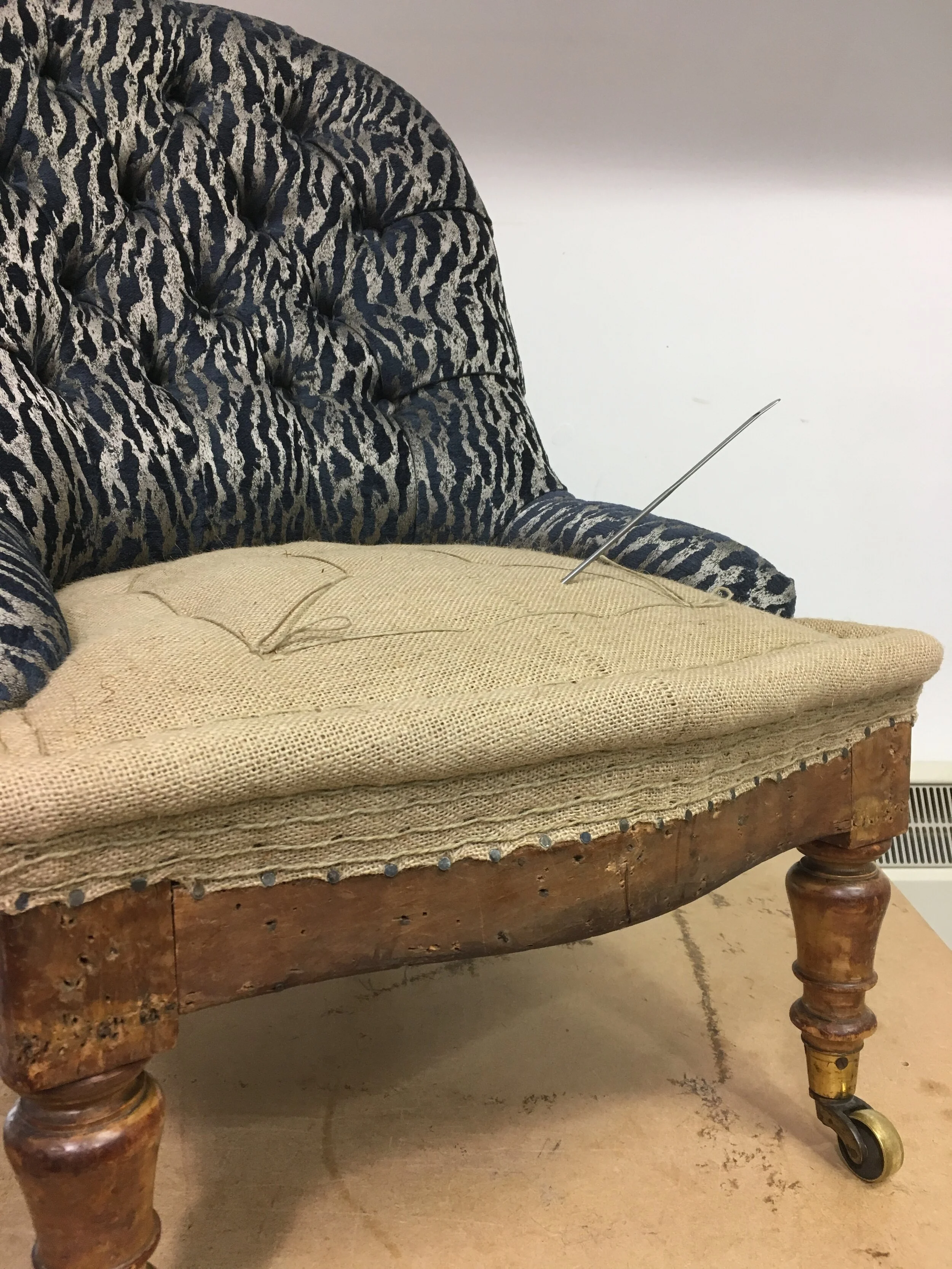 Our favourite type of upholstery work is conducted using the traditional methods of upholstery. These date back many centuries and allow us to showcase our best craftsmanship and skills. If you select to have a traditional piece of work completed, we invite you to join us at our workshop to see first hand how we transform your chair, and if we really like you, we might even give you a traditional English afternoon cream tea…